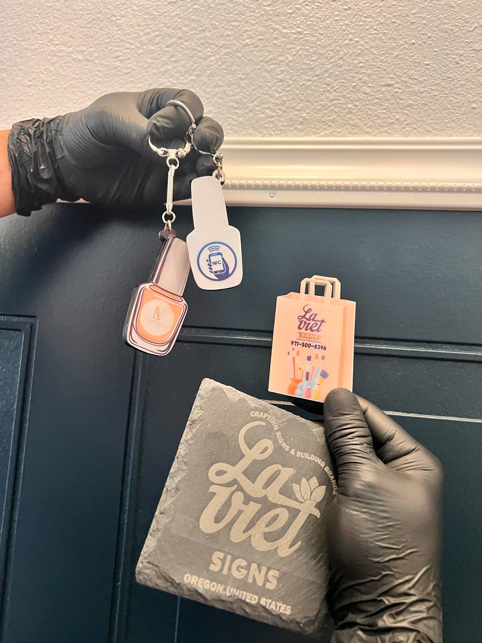 At La Viet Signs, we are committed to providing high-quality, custom-designed acrylic and NFC keychain products tailored to elevate your brand, events, and gift-giving experience. Our offerings include Acrylic Welcome Signs, Custom Acrylic LED Centerpieces, NFC Keychains, and Wedding Signage—all crafted with premium materials and expert precision to ensure lasting impact and style. Whether you're looking for corporate gifts, wedding favors, or personalized giveaways, we bring your ideas to life with creativity and care. Our NFC keychains can be customized with logos, engraved names, or company stamps to make each item truly unique. Experience the perfect blend of craftsmanship, innovation, and style with our exclusive range of products.